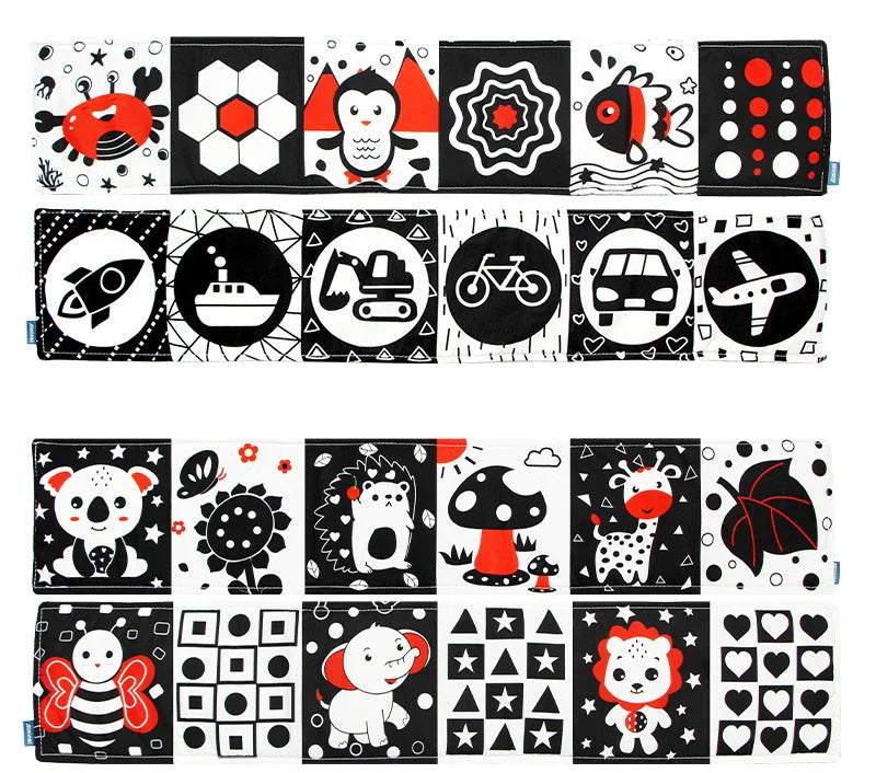 Introduza o seu bebê ao mundo dos estímulos visuais com o nosso Livro de Pano Preto e Branco! Adquira agora e inicie uma jornada de descobertas sensoriais e diversão para o seu pequeno tesouro!