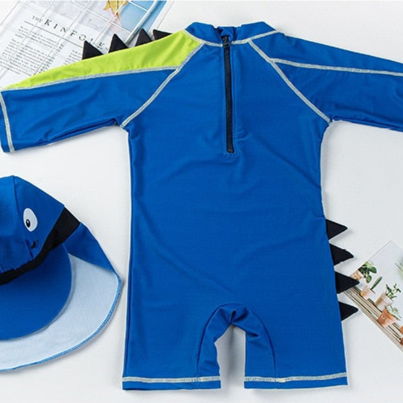 Macaquinho de Praia Infantil Manga Longa Dino a escolha ideal para proteger a pele sensível do seu bebê enquanto ele se diverte sob o sol. Com um design prático e cheio de estilo, essa peça oferece conforto e segurança nos dias de praia e piscina.